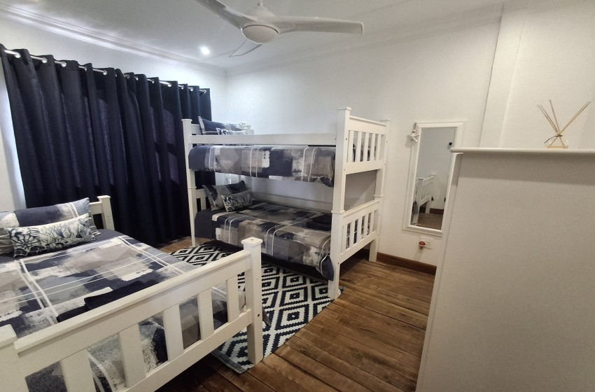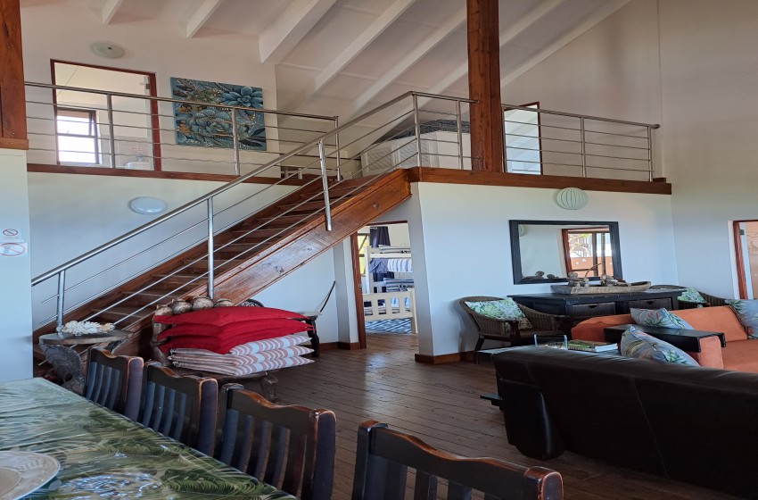 This house is nestled in a dune forest overlooking the sea and pristine beaches in front with Lake Sugi behind the dunes. The house is on a safe and secure upper-class development with 24-hour security. It is within 100 meters of the beach via wooden walkways. Also within walking distance from Ponta Malongane and Fredricos snorkeling spot. 7km from Ponta Do Ouro and 14km from the Kosi Bay border. Mamoli is 8km north and the city of Maputo is 110km north. Easy access from either the Kosi Bay border post, Reno Garcia border post (Komatipoort), and Goba border post (Swaziland). Normal driving times from Johannesburg is 7 hours and 4 hours from Durban. The house is ideally situated for daily trips to the Elephant Park and inland lakes. This double-story house is split into 3 Apartments: The Main House (top storey), The Family Apartment (bottom storey) and The Double Apartment (bottom storey). You can rent 1 of the 3 Apartments or the entire house. There are sea views from all 3 Apartments. There is a swimming pool and bar area that is shared by all 3 Apartments. The bar and swimming pool area is downstairs. Complimentary Starlink Wifi, ask the staff for the password. MAIN HOUSE Spacious and luxurious. A fully serviced and equipped kitchen. Open plan kitchen/lounge and dining area. There are 5 bedrooms, bedroom 1 has a double bed and bathroom en-suite with a shower, toilet, and basin. Bedroom 2 has a double bed with an en-suite bathroom with a shower, toilet, and basin. Bedroom 3 has 1 single bed and 1 bunk bed, sleep, 3 people. Bedroom 4 has 1 single bed and 1 bunk bed, sleep, 3 people. Bedroom 5 has 1 double bed and 1 single bed, sleep, 3 people. There are 2 sleeper couches and 1 single bed in the open loft area. 2 bathrooms for rooms 3,4 and five 1 bathroom is a shower, basin toilet And another bathroom is a shower, bath, basin, and toilet The Main House sleeps a maximum of 16 people. The 2 main bedrooms have air conditioners. 1 of the bedrooms has a portable aircon The other 2 bedrooms have ceiling fans. They are serviced daily and supplied with toilet paper, soaps, cleaning materials, doom, toilet spray, and hand cream. PLEASE TAKE NOTE THAT YOU NEED TO CHECK-IN AT THE HOUSE BY 6 PM AT THE LATEST. Please take note that if you are booked in on Mar Azul Estate and have a boat, jet ski, or quad bike, you can park at the security gate (bottom of the hill) for R300 a day or at the top of the hill (communal parking) for free. If you decide to park at the security gate then ensure that you have enough cash to pay for the parking on your departure date. House Rules To try and keep everyone safe and happy, please take note of some of our important House Rules: The speed limit in the resort is 10km/hr. Please respect the 10:30pm noise restriction - Loud music is not much fun when you are not at the party. No fireworks are allowed. Nearly all of our houses are made of wood and this could go horribly wrong. No children under the age of 18 are allowed to ride a quad bike. (Please note that this is Mozambiquean law, not our rules). No littering. We know this sounds really obvious, but you would be amazed, and, we would really appreciate it if you removed two pieces of rubbish from the beach each time you go. No unattended open fires. Yip, we already said it, the houses are made of wood and we don't want to light up the sky. There is a fish cleaning/gutting station near security. Please use this area so we can contain the smell and keep it clean so you don't get a fly in your drink. For security reasons, all casual labour must be sourced via the Mar Azul Manager. No access card, no entry. Guests must advise Security in advance of any visitors. If their name is not at Security, they will not be allowed access. Abuse of the Security staff will absolutely not be tolerated. They are here to look after us, so please treat them with respect. Thank you - we hope you have a wonderful holiday with us.
