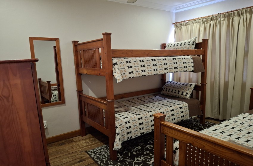 The swimming pool at this house has no safety features. Use of the swimming pool and the associated amenities and facilities is strictly at your own risk. No beds/mattresses are to be moved from any of the bedrooms due to damage caused whilst doing so, the breakage deposit will be retained should you do so. Should the property be booked by a group of youngsters, kindly NOTE no under 25's without parental/adult supervision. WHAT TO BRING: drinking water food drinks toiletries and/or items of a personal nature sunscreen mosquito spray beach towels STAFF TIP Main House - R100 per day this included the day of arrival and day of departure. REFUNDABLE BREAKAGE DEPOSIT: A refundable breakage deposit is payable 1 month prior to arrival and refunded within 14 days of departure: Main House, Double Apartment, and Whole House is equal to 1 night's stay. EARLY And LATE CHECK-IN/CHECK OUT Late check-out is on request only. This is due to incoming bookings on the day of your departure. Should the house be available, we will deduct the extra charge of R1500 from your refundable breakage deposit. If the whole house is booked a R2000 charge will be levied for early check-in and late check-outs. No pets are permitted at any of the GoBundu houses. Loud music, parties, and functions are not allowed. All guests must comply with the rules of the estate in which they are staying. Absolutely no noise is allowed between 10:00 PM and 6:00 AM. Failure to comply will result in a warning. If the issue occurs again after a warning, the full breakage deposit will be forfeited. Continued non-compliance may result in guests being asked to vacate the property immediately, with no refund for any unused nights