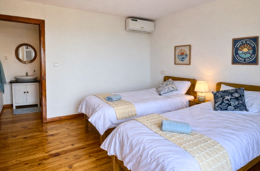 Salt & Sun is a relaxed, pet-friendly holiday home situated on the elevated Signal Hill housing estate in Ponta Malongane. This is a special addition to our GoBundu collection – the very first pet-friendly house on our books, making it ideal for families and couples who don’t want to leave their dogs behind. While the house is not directly on the beachfront, it enjoys uninterrupted sea views and is just a 5-minute walk to the beach via a sandy path and wooden walkway that leads straight onto the shoreline. The house comfortably accommodates small families, couples, or a small group. It offers two air-conditioned bedrooms, each with its own en-suite bathroom, as well as an additional bathroom. The open-plan living area flows onto a private balcony with a dining table, creating an easy indoor-outdoor living space with beautiful ocean views. The kitchen is well equipped for self-catering and includes a coffee machine. Guests must please bring their own Delta coffee capsules. The house also offers free Starlink WiFi, making it easy to stay connected during your stay. Outside, guests can enjoy a lush garden, seating areas, and braai facilities, with sea views visible from various points around the property. Signal Hill Estate offers excellent shared amenities, including Sunrise Voodoo Restaurant, an on-site restaurant serving daily meals. The restaurant features a swimming pool, and guests may request permission from the restaurant owners to make use of it. Right at the estate entrance gate, you will also find Captain Gus Restaurant, which has a swimming pool and a water slide, making it a great spot for children. The estate further offers daily housekeeping, secure on-site parking, and full-day security. Salt & Sun is located approximately 1.5 km from Ponta Malongane beach and 3.3 km from Ponta do Ouro beach, offering a peaceful setting with easy access to both areas. Pet-friendly note: Well-behaved dogs are welcome. All dogs must be kept on a leash at all times, as there are other dogs on the estate.