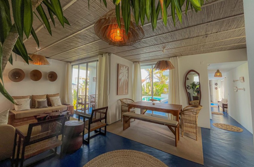 Tucked away in a quiet residential part of Ponta do Ouro, just 20 metres from the beach, Surfer’s Spot is an easy, laid-back escape ideal for families or groups looking to surf, unwind and enjoy beach life at its best. This comfortable beach house is located just one home back from the main swimming bay and a short walk from local markets, restaurants, and surf spots — including one of Africa’s longest waves. Surfer’s Spot sleeps up to 8 guests in three air-conditioned bedrooms: • Bedroom 1: Queen bed with en suite bathroom (large shower, toilet, double basin) – Sleeps 2 • Bedroom 2: Queen bed - Sleeps 2 • Bedroom 3: Two bunk beds – Sleeps 4 • Bedrooms 2 and 3 share a bathroom with shower, toilet, and basin • All beds have custom-made mosquito nets The home includes a separate children’s lounge with books, a TV, and soft seating — the perfect space for little ones to relax and play while adults enjoy the main lounge or outdoor entertainment area. The fully equipped kitchen includes: • Gas hob and electric oven • Microwave • Fridge and freezer • Coffee machine • Kettle • Washing machine • All cutlery, crockery, and cookware for self-catering The open-plan living and dining area flows through sliding doors into a lush, private garden with shaded seating and a built-in braai. A large wooden dining table seats 9 guests comfortably, creating an inviting outdoor space to gather after long beach days. WiFi The house has a wifi router; you need to buy data. 1 Gig costs around 50 meticais. Private Swimming Pool Surfer’s Spot now features its own private swimming pool — ideal for cooling off in the afternoons or enjoying relaxed poolside days in the sun. Additional Facilities: • Air conditioning in all bedrooms • Bed linen and bath towels provided (bring your own beach towels) • ZAP TV with USB port • Outdoor shower • Daily housekeeping • Secure parking Beach Access & Activities A short 20-metre walk brings you to the beach, perfect for surfing, swimming, or long barefoot strolls. Ponta do Ouro offers a vibrant mix of surf, local flair, and family-friendly charm — with dive centres, restaurants, markets, and essential amenities nearby. Travel Information Surfer’s Spot is easily accessible without the need for a 4x4 vehicle. The Kosi Bay border is just a 30-minute drive away. Whether you’re a surfer chasing waves or a family seeking a relaxed coastal break, Surfer’s Spot offers the perfect base to enjoy the warm waters and easy rhythm of life in Southern Mozambique.